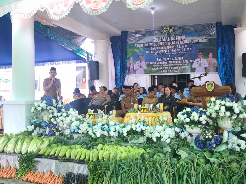 Kunjungan ini turut dihadiri jajaran kepala OPD, Tripika Kecamatan, Sangadi se-Kecamatan Mooat, tokoh adat, tokoh agama, perangkat desa, BPD, serta masyarakat umum.